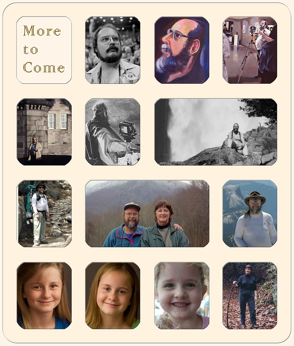 People began paying me to shoot pictures in the early 1970s. I quit the day job when freelancing rivaled my restaurant manager's salary — and quickly learned that turning pro required more than an answering service and a pile of photography-by-me business cards. I returned to school in '77 for Daytona State College's commercial photography program. I opened a Commercial / Industrial / Architectural Photography studio in 1979, in Fairhope, Alabama. The response was underwhelming. I set out to establish a local identity by selling feature photos to The Independent. I proved a good fit for the Robertsdale, AL-based weekly newspaper. My pictures regularly appeared above the fold on page one, peering out from newspaper racks throughout the county. Editor Mike Ryland included six of my 1980 photos in the paper's submission to the Alabama Press Association's annual, statewide competition. Three won awards: 1st place Feature Photo, 2nd place Feature Photo and 2nd place Sports Photo. The resultant publicity helped push my business to the next level. Ad agencies, PR firms, architects, concert promoters, and artists dominated my assignment sheets for the next seven or eight years. I wrote and sold my first magazine article in 1980. Being published in a national equestrian magazine generated little publicity for my photography business; the return on my time was far below what I made behind the camera. I didn't attempt another until a chance meeting with the editor sparked my series in PTN's Studio Photography (then the nation's highest circulation trade magazine targeting professional photographers). A few months later I met with Mobile Bay Monthly's new editor, hoping to protect sporadic stock photo sales. I left with the '87 assignment that launched my ongoing "Gallery" department. I joined PMT Publishing in '88 as a contributing photographer. A year later I became the company's lone staff write. I was assigned to Business Alabama Monthly, but also contributed to its other statewide publication, Alabama magazine. I left after two years to participate in the planning and launch of Dobbs Publishing Group's national nostalgia magazine, Down Memory Lane. I served as managing editor until it ceased publication in late '93. I returned to Business Alabama until joining the University of South Alabama in 1995. I remain a Business Alabama contributor. I've used Photoshop since Version 3 (early 1994). Initially it served as a conduit between scanner and computer. I did little more than crop and resize images and make minor Brightness / Contrast adjustments. For the past dozen years Photoshop has accounted for at least half of my output: day-job and freelance. Photography, writing, page layout (InDesign), and novice-level web work (Dreamweaver) fill out my schedule. When not working (which as Susan often reminds me, is a rarity), I spend time traveling, backpacking in the High Sierra, and playing grandpa to three amazing little ladies.
