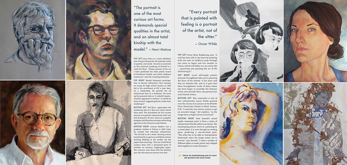 A Study in Selfies Within every artist’s career, one must eventually take a look in the mirror to find the most cooperative – and difficult – of subjects. Mobile Bay Magazine, September 2013. Text and photos by Adrian Hoff |