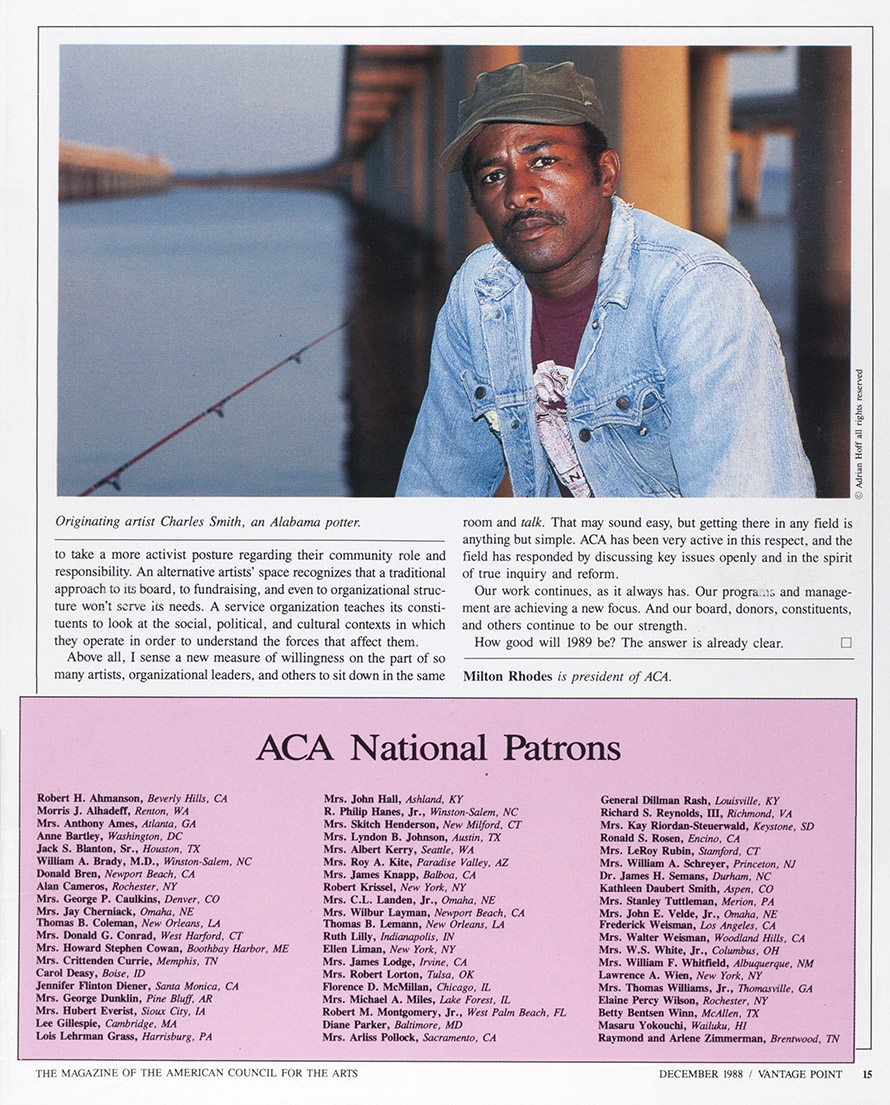 Vantage Point: The Magazine of the American Council for the Arts. December 1988. Photo by Adrian Hoff.