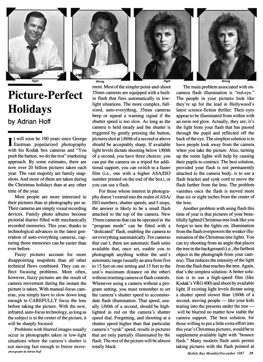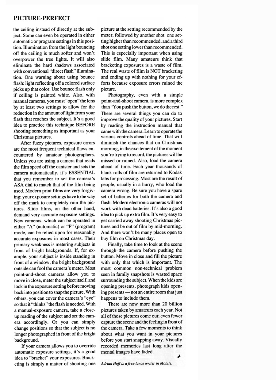 Picture Perfect Holidays - Mobile Bay Monthly Magazine, December 1987. Text and Photos by Adrian Hoff.